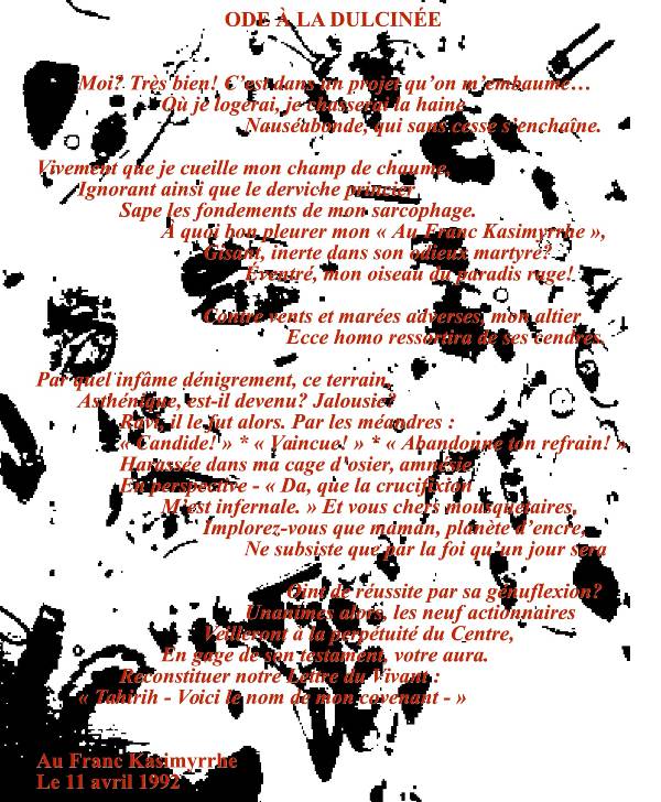 Cela m’a troublé à vrai dire, alors je me suis à décidé à le soumettre au jugement du plus grand nombre pour voir si on pouvait y trouver cette aspect.Un ami a écrit : Ton poème est absolument obscène et lubrique